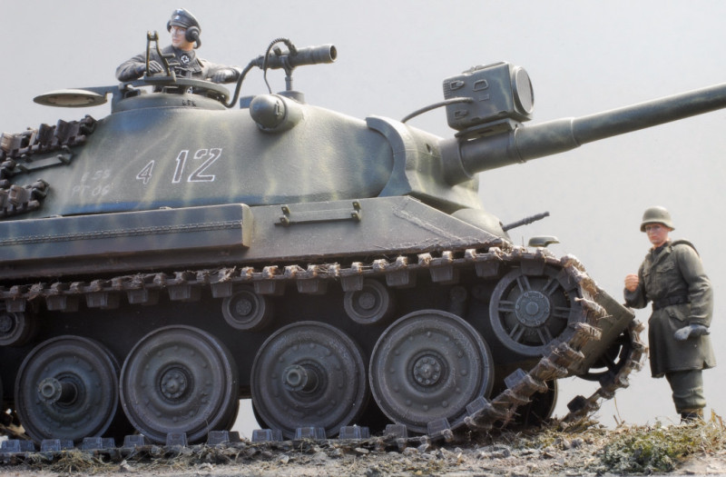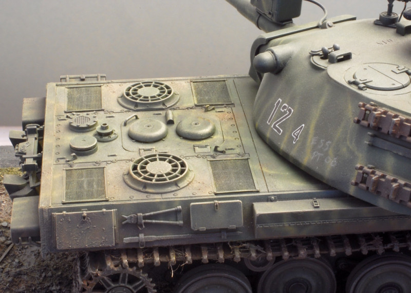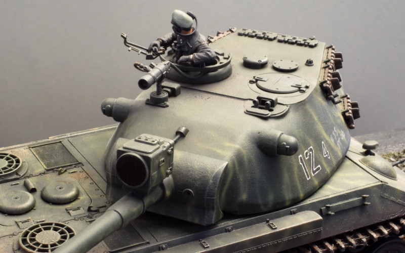 An old Tamiya Leo 1 turret, supplemented with parts of a Tiger I/II, plus a Panther cover and the start was made. The tub is constructed of sheet sheets. The rear part of the tub was also decorated with tiger details (fans etc). In addition, a Tiger loading chain from Dragon. Painted, as usual with Tamiya Acrylics. The model won a bronze medal at SCALE MODELWORLD 2009.