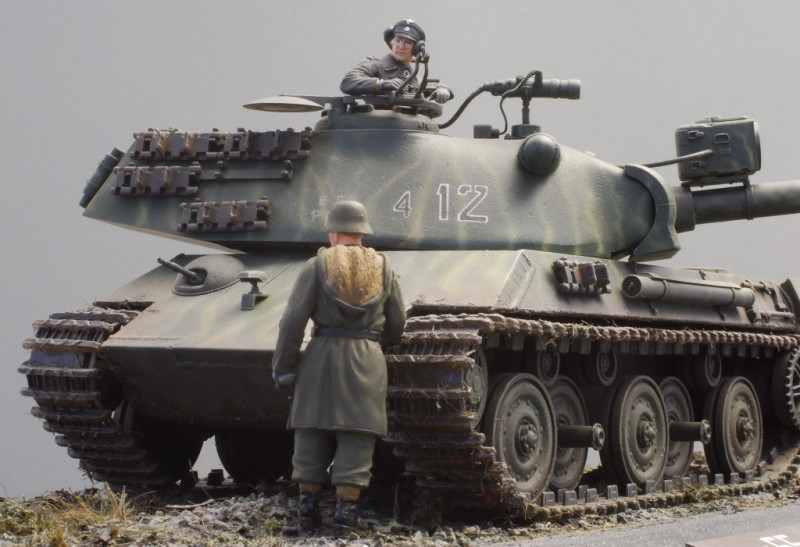 The model was created from the excellent parts of Tamiya's Type 90. With the help of sheet material, a punch & die sets and a bit of brainstorming, I was able to create a completely new type of vehicle in just a few weeks. I think this "real-fiction" (which also includes Luftwaffe 1946 / what if) is really fun as a respite from the strict "model" building in between!